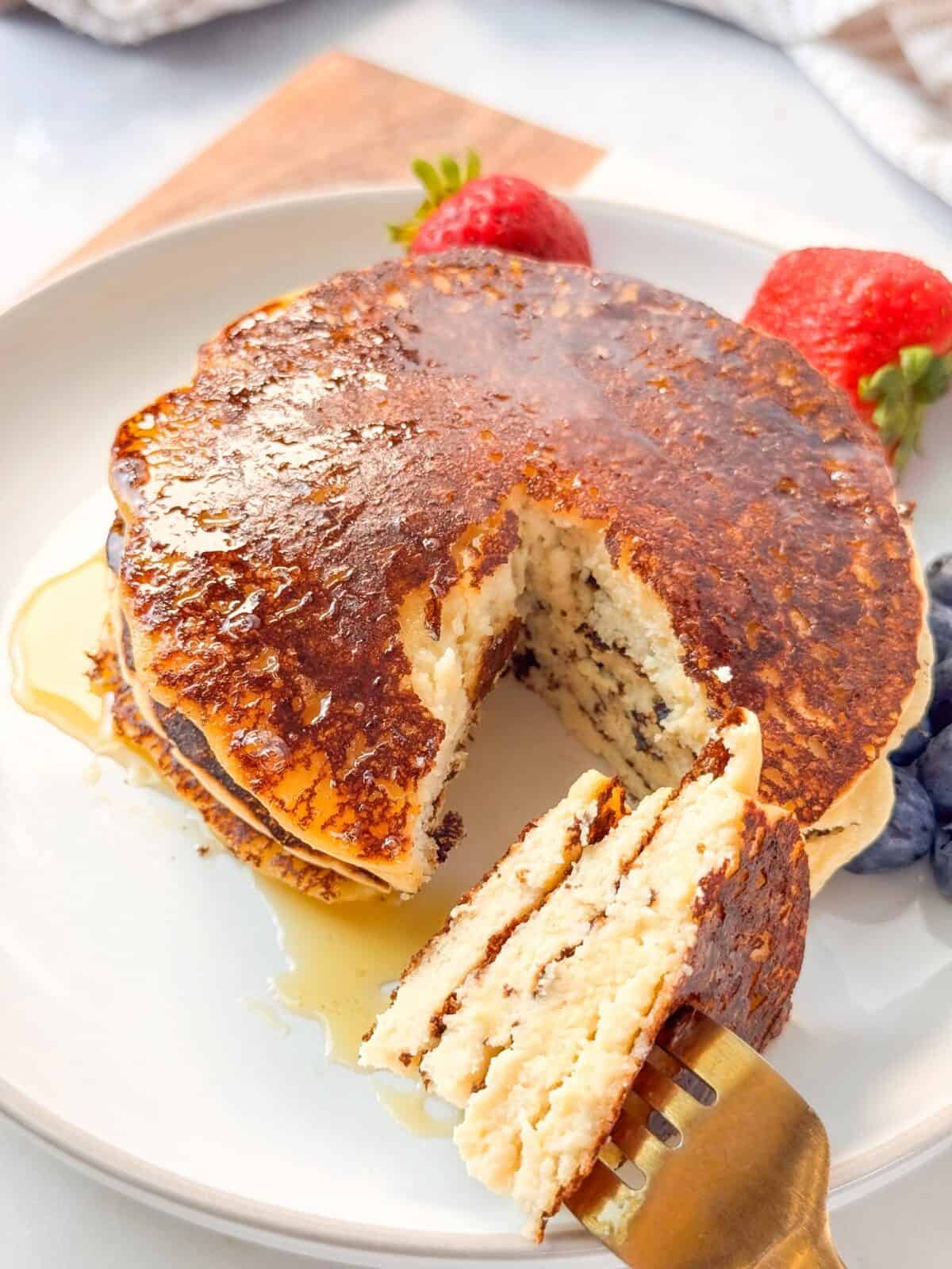 Use small curd cottage cheese for the smoothest texture. Full-fat cottage cheese makes the pancakes richer and creamier, while low-fat cottage cheese works for a lighter option.