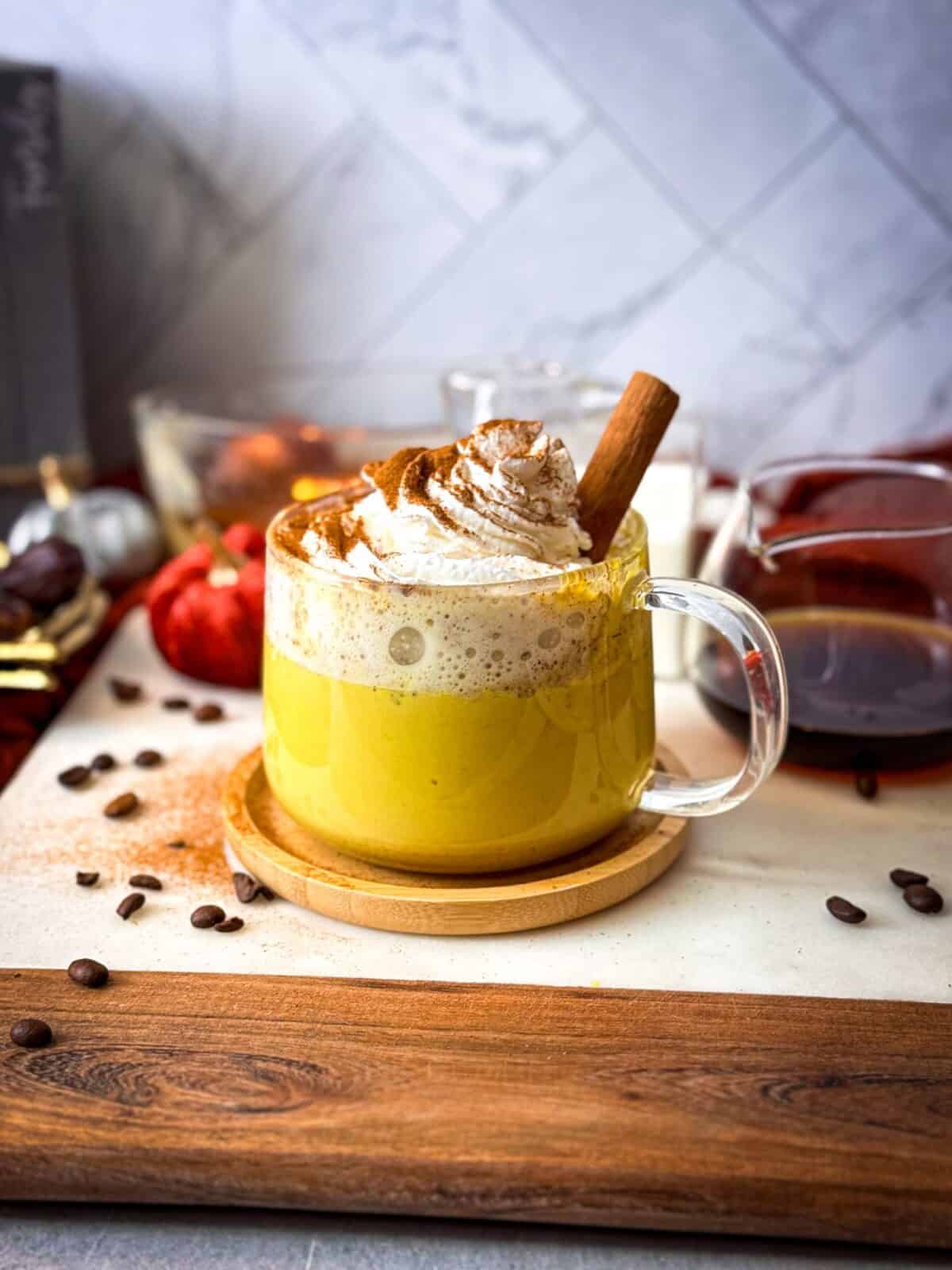 A splash of coffee ties it all together, adding just the right amount of richness without making it overly bitter. The result is a creamy, spiced latte that’s both indulgent and nourishing. It’s the kind of drink you want to wrap your hands around on a chilly evening, sip slowly, and savor. You will also love to try oat milk pumpkin spice latte (dairy free), peanut butter coffee, and creamy avocado banana smoothie.